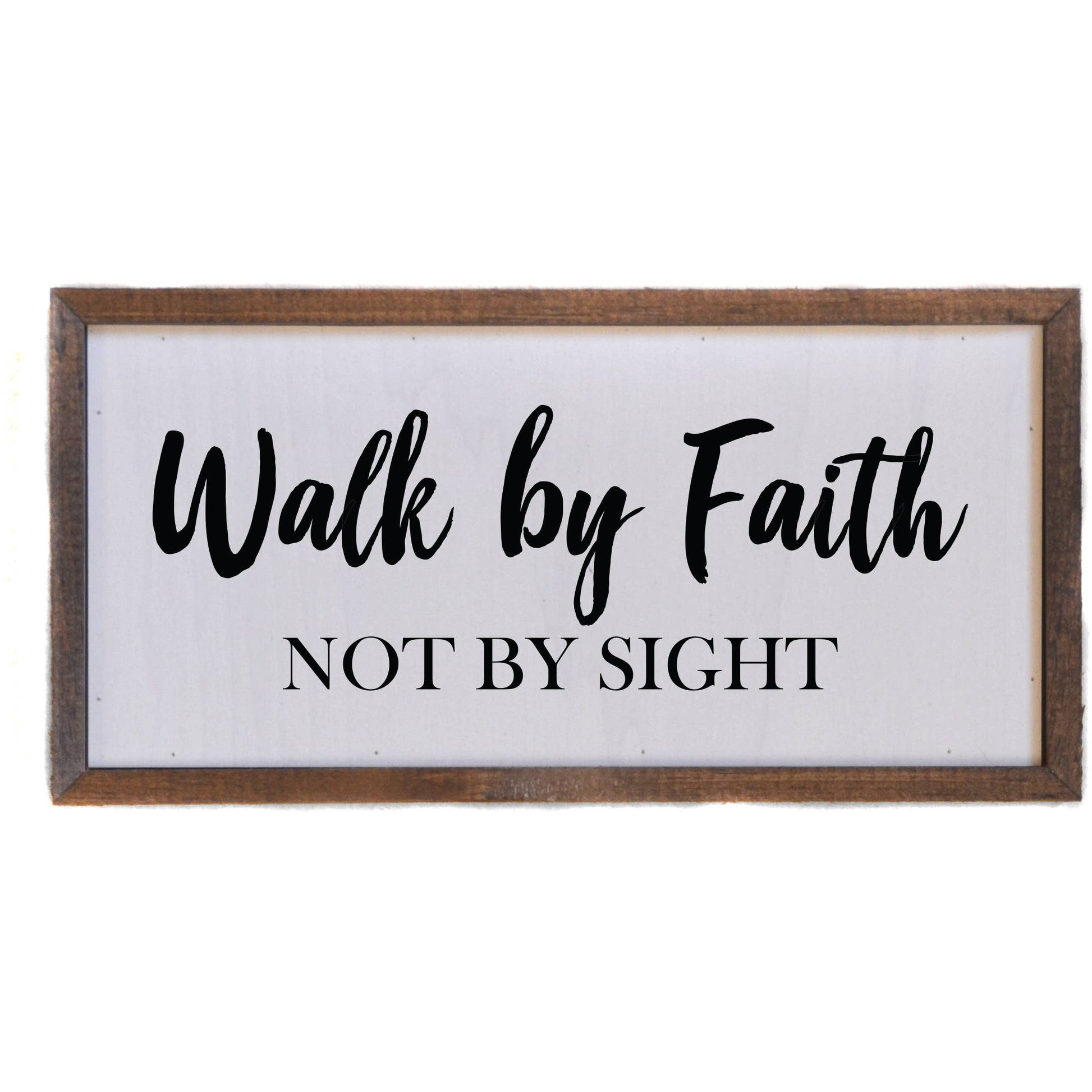 12x6 Walk By Faith Not By Sight Wall Sign or Desk Sitter. Signs are hung directly off the frame or will sit on a shelf. Keywords: Home Decor, Vintage Home Decor, Wood Signs, Wall Signs, Box Frames, Faith, Spiritual, Religious Wall Decor