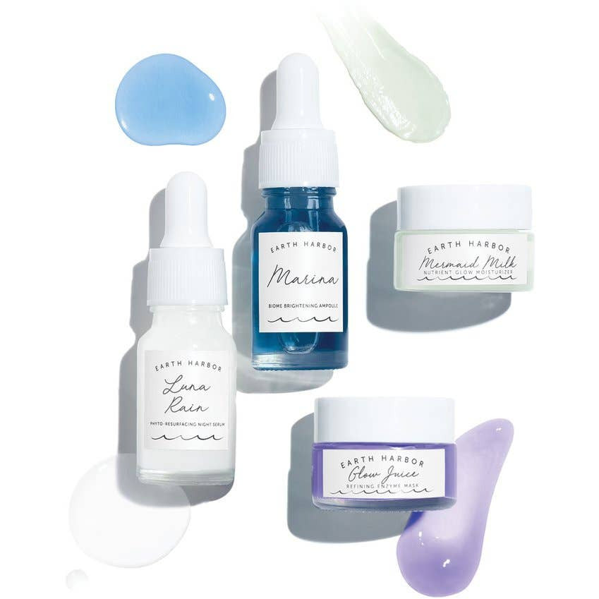 The deluxe mini collection for bringing balance, purity, and a glowing complexion to your cherished face. Especially beneficial for oily, combination and congested skin types, yet wonderful for all skin in need of clarifying, energizing, and gentle exfoliation with a light dose of hydration. This is the perfect discovery kit for experiencing Earth Harbor's customizable skincare rituals through mixing, blending, and layering products for personalized results.