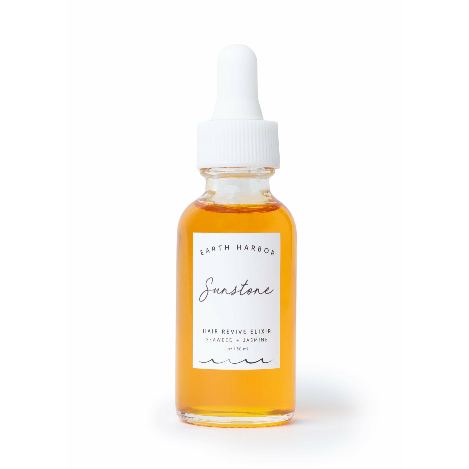 Fortify, nourish, and revive dull or damaged hair using superfood nutrition of Seaweed and Coconut, anti-pollution properties of Jasmine and Calendula Flowers, and ultra-rejuvenation of Carrot Seed and Jojoba Oils. When massaged into your scalp, SUNSTONE Hair Revive Elixir promotes a flow of positive energy to hair follicles and envelops your hair in a crowning aroma of fruit, flowers, and fresh earth. She is the perfect herbal tonic for tackling dry scalp, scraggly ends, and worn strands — a ray of sunshine in your hair care ritual that was created with all hair types in mind.