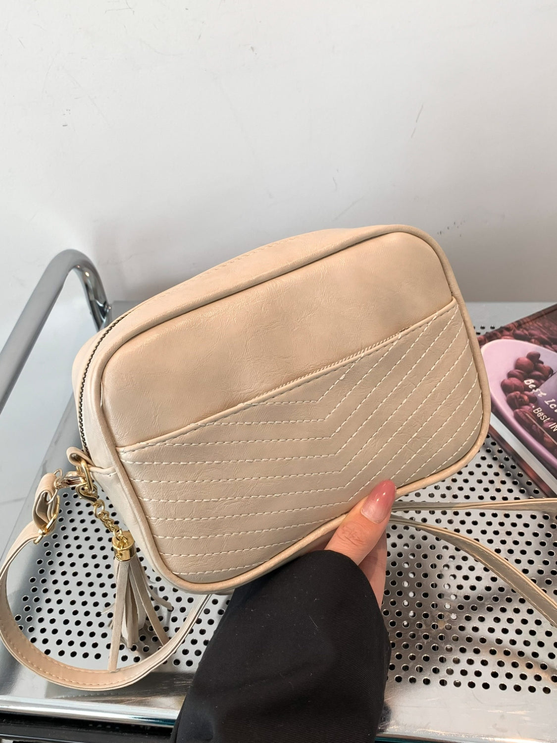 Tassel PU Leather Printed Strap Cassette Crossbody Bag